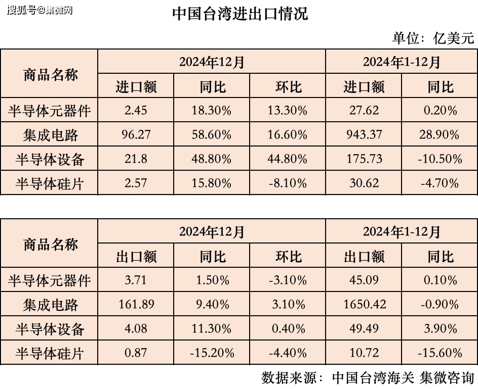 集微网对中国及全球次要半导体进出口国度或地域的半导体财产进出口数据进行统计阐发,发布《全球半导体进出口演讲——第八期(2024年1-12月)》。