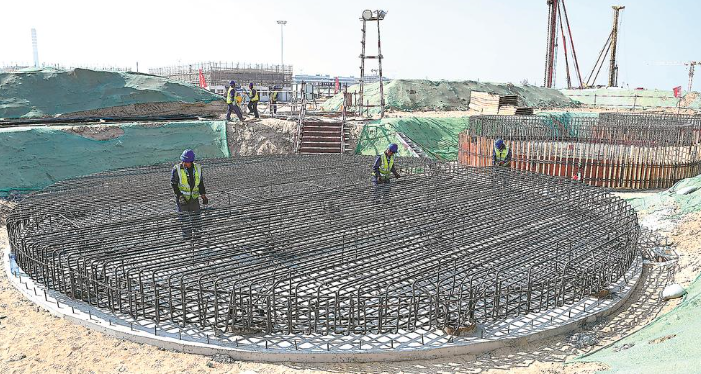 古雷石化南化苯胺-橡胶帮剂财产链项目现场,200多名工人正进行钢筋绑扎、根本回填夯实、地下管道开挖等工做。詹照宇 摄!