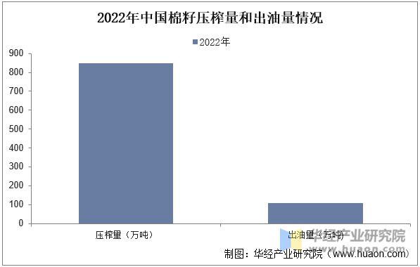 我国棉籽压榨量环境而言,棉籽颠末分歧工序处置,凡是环境下能够获得棉短绒、棉籽壳、棉籽脱酚卵白(棉粕)和棉籽油4种产物,每种产物按照各自的特征被普遍地使用到食物、化工、医药等行业中,目前我国棉籽近9成用于压榨,数据显示,近年来我国棉籽压榨正在正在850万吨,现实出油量为110。5万吨,出油率正在13%摆布。